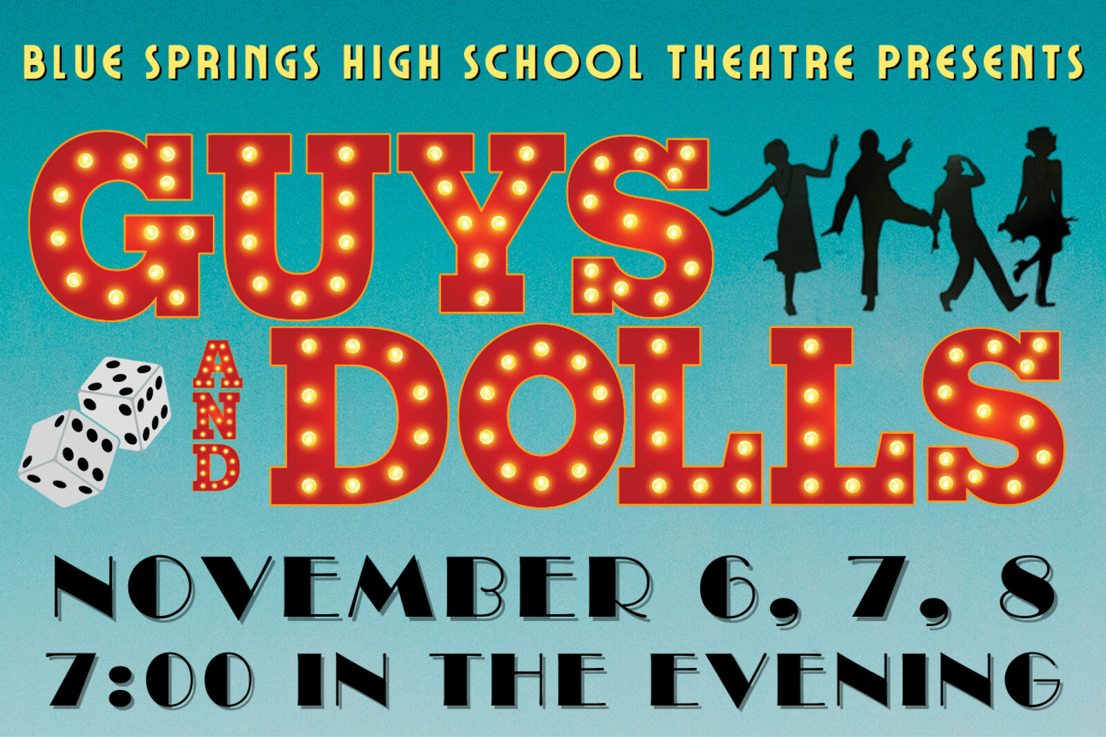 Guys & Dolls at Blue Springs High School Dates/Times: November 6 at 7:00 p.m. November 7 at 7:00 p.m. November 8 at 7:00 p.m. Where : BSHS Performing Arts Center Price : $12 R. . .